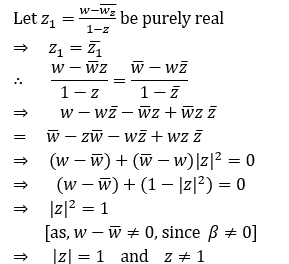 Q2.If w = α + iβ, where β ≠ 0 and z ≠ 1, satisfies the condition that (( w - w ̅z )/( 1 - z ) ) is purely real, then the set of values of z is