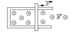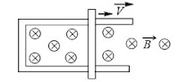 Q8. A rod lies across frictionless rails in a uniform magnetic field B ⃗ as shown in figure. The rod moves to the right with speedV. In order to make the induced emf in the circuit to be zero, the magnitude filed should